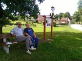 Informační cedule, rozcestník, lavička pod dubem